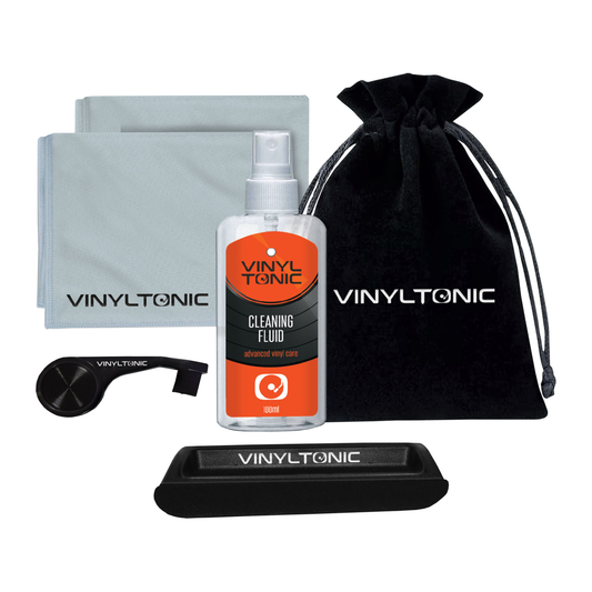 Vinyl Tonic Vinyl Record Cleaning Kit – Includes Cleaning Fluid, Velvet Brush, Microfiber Cloth, Stylus Brush & Storage Bag